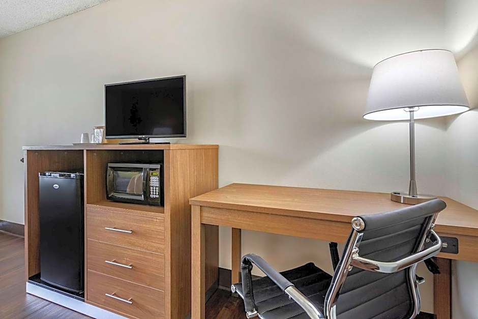This double room features a microwave, small refrigerator, and seating area. A cable TV is also included.